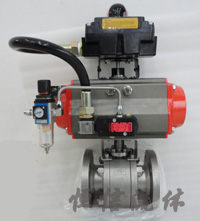 氣動(dòng)固定球閥是雙向閥,流向無(wú)限制。中法蘭用螺柱連接,上下閥桿均設(shè)有滑動(dòng)軸承,減少磨擦,使用操作省力、平穩(wěn)。在正常情況下:壓力低時(shí)閥座密封依靠彈簧預(yù)緊力使閥座緊 貼球體達(dá)到密封,壓力高時(shí),在閥座上形成活塞效應(yīng),在上游介質(zhì)壓力作用下,使閥座壓緊球體達(dá)到密封、氣動(dòng)固定球閥,氣動(dòng)球閥,球閥廣泛應(yīng)用于過(guò)程控制系統(tǒng) 實(shí)現(xiàn)開(kāi)或關(guān)。